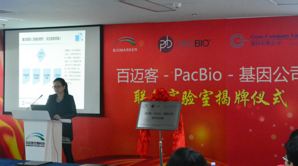 12 月27日,北京百邁客生物科技有限公司與PacBio、基因有限公司舉行了聯(lián)合實驗室揭牌儀式。北京百邁客生物科技有限公司創(chuàng)始人、董事長兼CEO鄭洪坤 先生,PacBio公司 Senior Director of Sales -North Asia(北亞區(qū)高級銷售總監(jiān))牟德宜女士;基因有限公司儀器事業(yè)部總經(jīng)理項連才先生等多位三方代表參加了揭牌儀式。轉(zhuǎn)化醫(yī)學、生物谷、測序中國作為特邀 媒體參加了本次揭牌儀式。