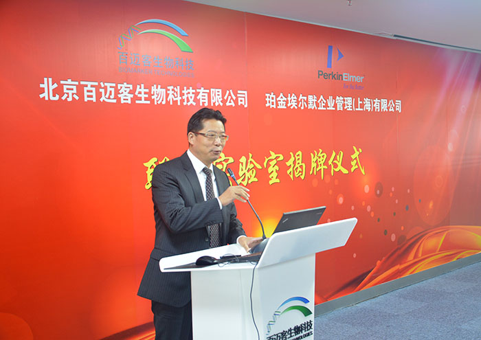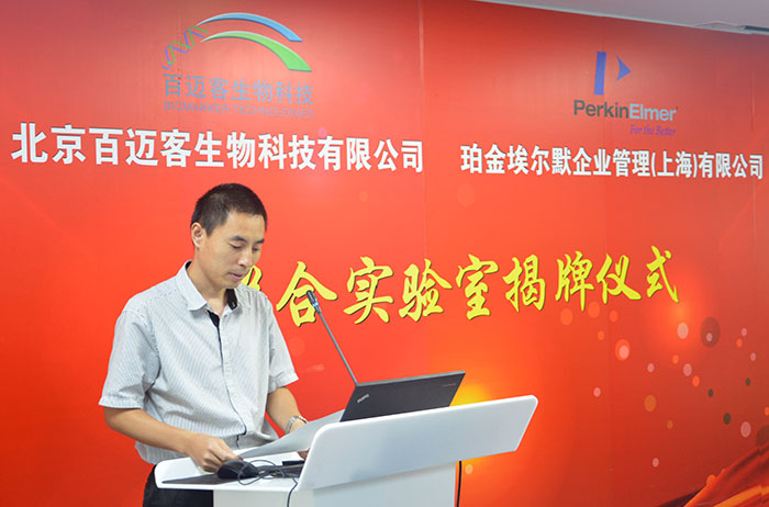 揭牌儀式上,百邁客CEO鄭洪坤在致辭中表示:“百邁客與珀金埃爾默公司建立聯(lián)合實(shí)驗(yàn)室,將展開深入合作。雙方將聯(lián)合開發(fā)更加適用于高通量測序的 自動化文庫構(gòu)建系統(tǒng),此舉將大大提升測序前樣品處理的自動化水平,提高百邁客在基因測序行業(yè)的競爭力。與此同時,珀金埃爾默公司也將借助百邁客在國內(nèi)的營 銷體系進(jìn)一步拓展在中國,乃至亞太地區(qū)的市場占有率。珀金埃爾默公司覆蓋全球的業(yè)務(wù)團(tuán)隊(duì)也將助力百邁客生物云平臺在全球市場的開拓。我相信在雙方共同努力 下,通過真誠密切的實(shí)質(zhì)性合作,聯(lián)合實(shí)驗(yàn)室的建設(shè)一定會達(dá)到互惠雙贏,共同發(fā)展的目的,一定會為企業(yè)合作塑造新典范,貢獻(xiàn)新經(jīng)驗(yàn)。”