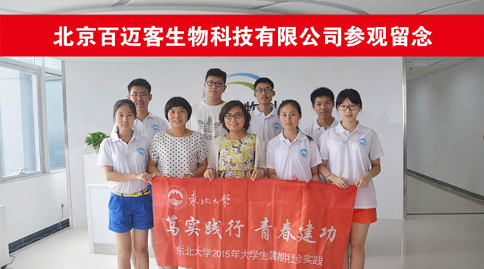 2015年8月7日下午13:30時(shí),東北大學(xué)生物工程專(zhuān)業(yè)的7名大學(xué)生來(lái)到百邁客,進(jìn)行參觀(guān)交流。此次暑期參觀(guān)活動(dòng)為東北大學(xué)校方支持的學(xué)生假期實(shí)踐活動(dòng)之一。