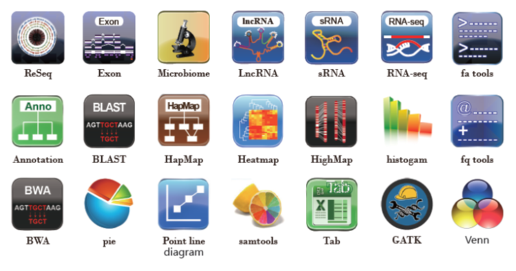 標準化流程分析的集成式App是依據(jù)公司多年來進行生物信息分析的經(jīng)驗,集成了一類生物信息分析所要用到的多個軟件,并讓這些軟件串聯(lián)起來,形成一個標準 化的分析流程。標準流程分析出的結(jié)果與常規(guī)交由公司進行數(shù)據(jù)處理分析得到的結(jié)果一致,以分析報告的形式展示。