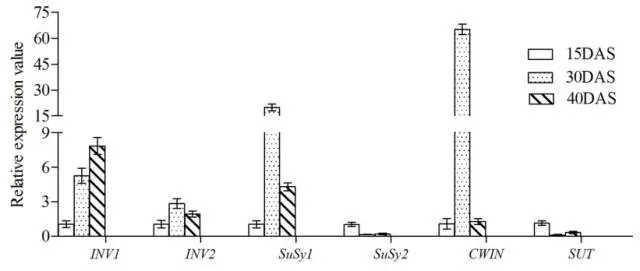 5.使用qRT-PCR驗證參與蔗糖代謝的差異表達基因。這6個差異表達基因的表達水平與RNA-seq結果是一致的。