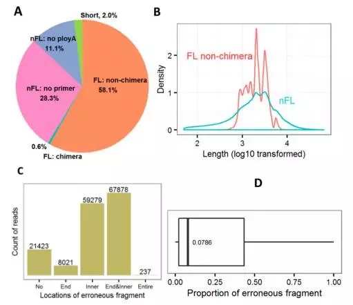 共獲得802,358個(gè)ROIs序列,其中有1.466,034全長非嵌合(FL)序列和316,000非全長(nFL)序列。