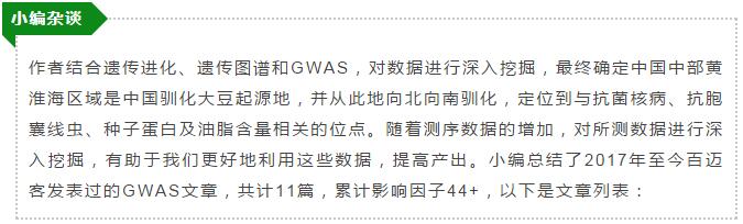 大豆作為重要的農作物,在我國有著6000-9000年的馴化史,其馴化方向主要與產量、品質和抗病等性狀相關。東北農業(yè)大學的李文濱教授及其團隊和北京百邁客生物科技有限公司合作,在大豆起源、抗菌核病、抗胞囊線蟲、種子蛋白及油脂含量方面取得重要進展,其研究成果相繼發(fā)表在New Phytologist、The Plant Journal、BMC Genomics和Genomics,累計影響因子23+。下面我們就看看作者是如何對數(shù)據(jù)進行深入挖掘,做到低投入、高產出的。