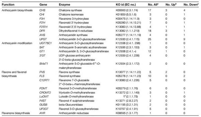 通過轉錄組和代謝組技術,不僅可以對轉錄水平進行研究,還可以對代謝產(chǎn)物進行比較分析,從而深入解析決定表型的分子調(diào)控機制。本研究首次使用轉錄組和代謝組聯(lián)合分析,揭示與風信子花色素沉著相關的主要代謝途徑,并且挖掘針對植物中色素沉積相關的關鍵基因。