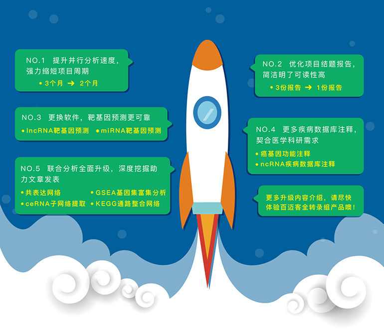 更多升級(jí)內(nèi)容介紹,請(qǐng)盡快體驗(yàn)百邁客全轉(zhuǎn)錄組產(chǎn)品噢!