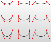 當(dāng)一個(gè)點(diǎn)某一側(cè)的控制點(diǎn)是它另一側(cè)的控制點(diǎn)的對(duì)稱(以保持斜率不變),可以使用S命令。簡(jiǎn)寫的貝塞爾曲線命令。