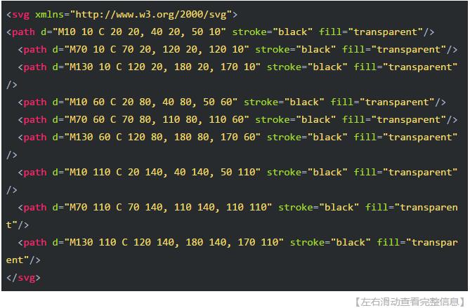 【需要注意】,T命令前面必須是一個(gè)Q命令,或者是另一個(gè)T命令,才能達(dá)到這種效果。如果T單獨(dú)使用,那么控制點(diǎn)就會(huì)被認(rèn)為和終點(diǎn)是同一個(gè)點(diǎn),所以畫出來的將是一條直線。