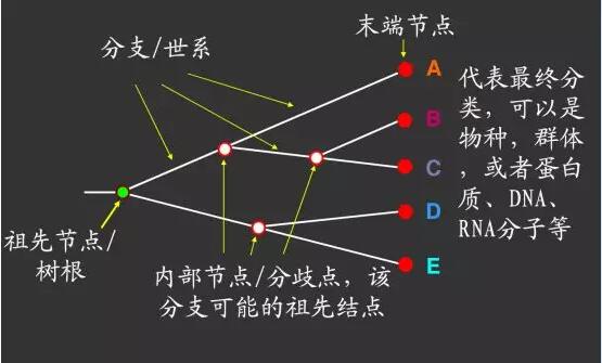 有根樹指定了根節(jié)點,樹中可以看出各個節(jié)點的距離和祖先節(jié)點以后各個分枝分化的先后關(guān)系,因此可以用于分化時間的推斷;
