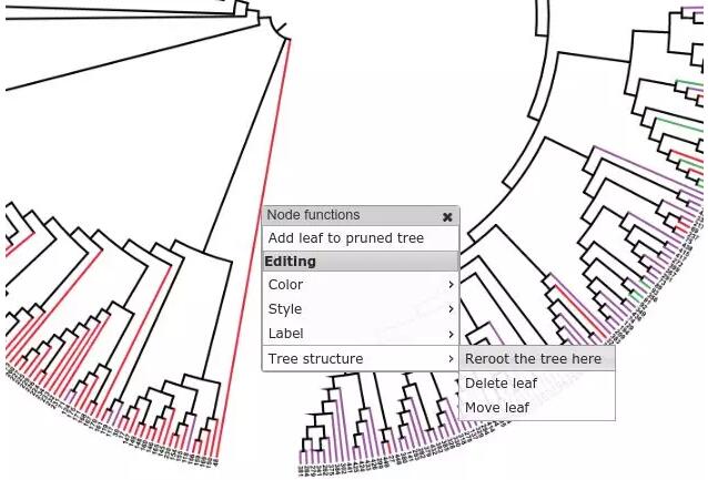 5、樹根的指定。選擇需要指定為根的枝點,在彈出的下拉框中選擇Tree structure — Reroot the tree here即可。