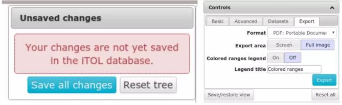 6、編輯確定后,點擊右上邊的Save all changes即保存了當(dāng)前的編輯,編輯完成并保存后,選擇export選項卡,選擇輸出文件的格式,一般選擇svg/pdf等矢量圖格式,Export area務(wù)必選擇Full image。