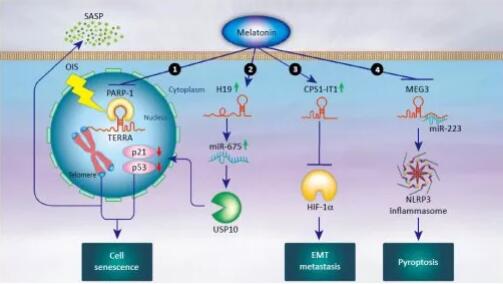 褪黑素(melatonin)又被稱為褪黑激素、松果體素,由腦內(nèi)一個叫松果體的器官分泌,且分泌得非常有規(guī)律,最初被稱為晝夜節(jié)律的生化同步器,有“體內(nèi)安眠藥”的美稱。褪黑素可以調(diào)控多種器官和細胞類型的多種功能,比如協(xié)調(diào)轉(zhuǎn)錄因子和ncRNA,以調(diào)控不同發(fā)育階段、不同病理階段和不同條件下的基因表達。