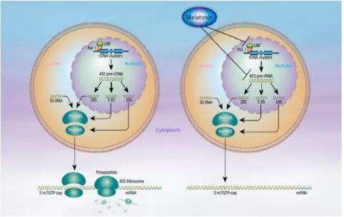 圖3 侵襲性乳腺癌細胞中褪黑激素對核糖體生物合成的抑制作用