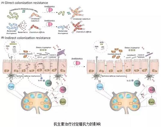抗生素治療帶來不良影響的原因多種多樣。首先,它可能破壞微生物之間以及微生物與宿主之間的相互作用,而這些互作是維持人體生態(tài)體系內(nèi)穩(wěn)態(tài)的關(guān)鍵。其次,它還可能促進(jìn)抗生素耐藥菌的增長,及導(dǎo)致其它敏感型細(xì)菌獲得抗生素耐藥性。這些機(jī)制可能導(dǎo)致微生物菌群組成的不可逆改變。最后,因抗生素使用過度減少了共生細(xì)菌對(duì)免疫系統(tǒng)的刺激,可能會(huì)破壞免疫系統(tǒng)的適當(dāng)“education”,從而產(chǎn)生對(duì)自身或無害抗原的免疫反應(yīng),即發(fā)生自身免疫反應(yīng)或過敏反應(yīng)。