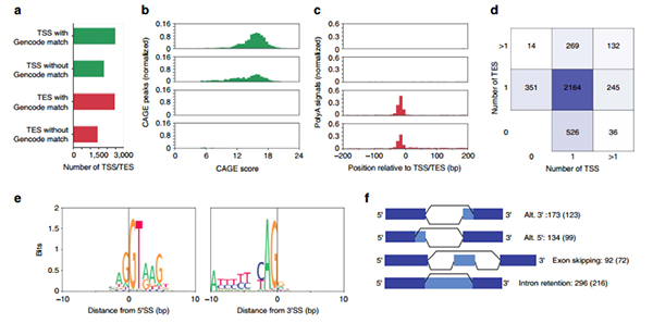 1、鑒定到4234 TSSs 和3883 TESs,其中Genecode數(shù)據(jù)庫(kù)已知2476 TSSs 和2448 TESs ;