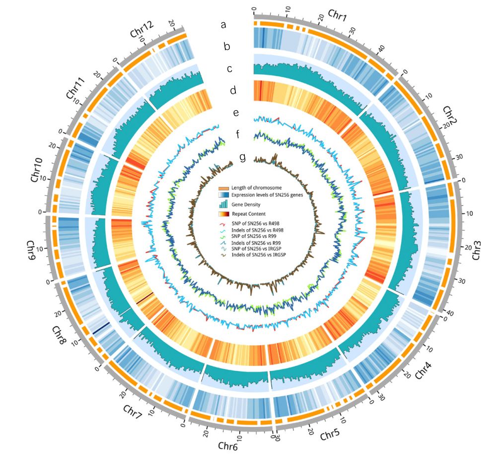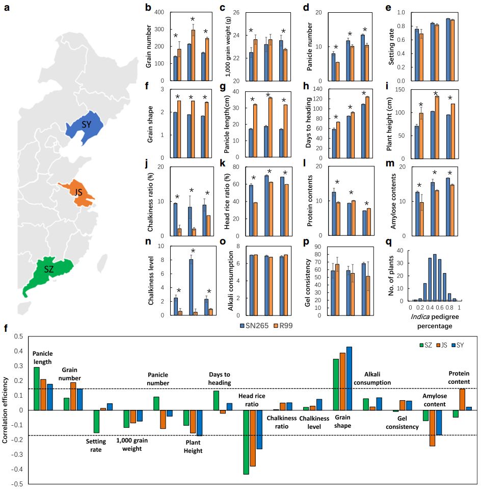 秈稻和粳稻為亞洲栽培水稻的兩個(gè)亞種,它們的地理分布以及形態(tài)學(xué)性狀差異明顯,揭示其農(nóng)藝性狀背后的遺傳基礎(chǔ)對(duì)于水稻生產(chǎn)非常重要,然而,其遺傳背景、生態(tài)條件以及農(nóng)藝性狀之間的關(guān)系尚不清楚。沈農(nóng)265(SN265)是我國(guó)第一個(gè)商用的超級(jí)稻,它作為中國(guó)北方骨干親本引領(lǐng)著育種方向。本研究利用二代和三代測(cè)序?qū)Ρ狈骄统?jí)稻SN265和R99進(jìn)行測(cè)序,并獲取SN265高質(zhì)量基因組,又構(gòu)建了RIL群體重測(cè)序遺傳連鎖圖譜,并對(duì)多個(gè)重要農(nóng)藝性狀進(jìn)行了QTL分析。此外,還發(fā)現(xiàn)若干基因功能隨生態(tài)環(huán)境的變化而改變,并且許多等位基因?qū)Σ煌倪z傳背景呈現(xiàn)差異性的響應(yīng)。