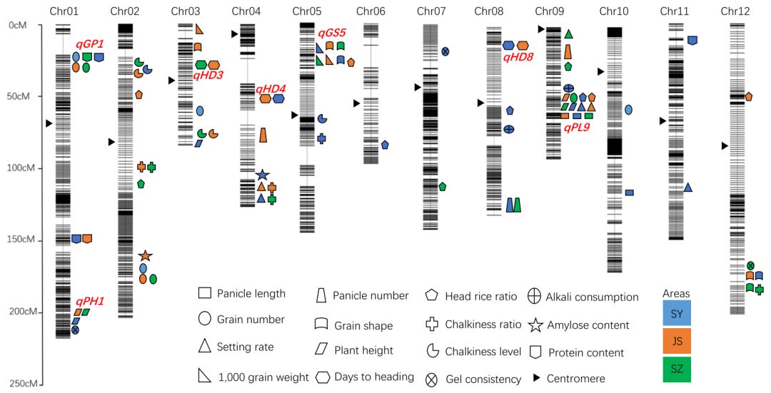 2、不同稻區(qū)多年的表型數(shù)據(jù),定位到了多個(gè)QTL簇,從而將研究重點(diǎn)放在這些QTL簇上。