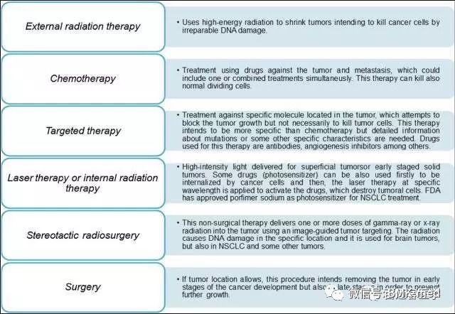 非外科治療方案,通過影像引導(dǎo)下腫瘤定位,利用γ射線或X線單次或多次照射腫瘤組織。這一放療方法可導(dǎo)致DNA非特異性位點的損傷,主要用于腦腫瘤,但也可用于NSCLC及其他腫瘤; - 手術(shù)