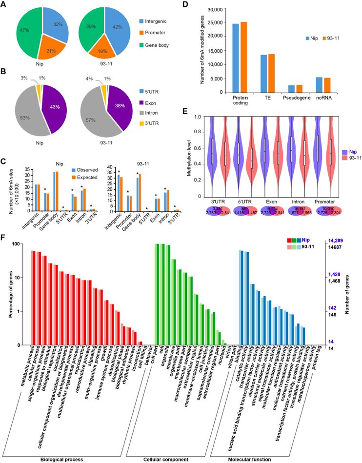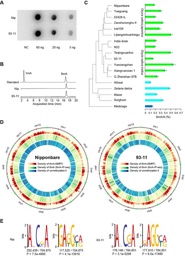 ? 水稻Nip、93-11和擬南芥6mA甲基體的比較