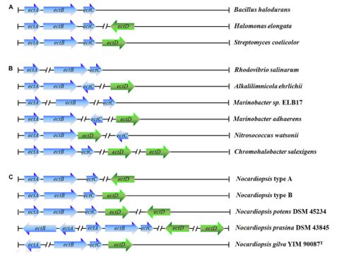圖3、四氫嘧啶和羥基四氫嘧啶合成基因基因簇