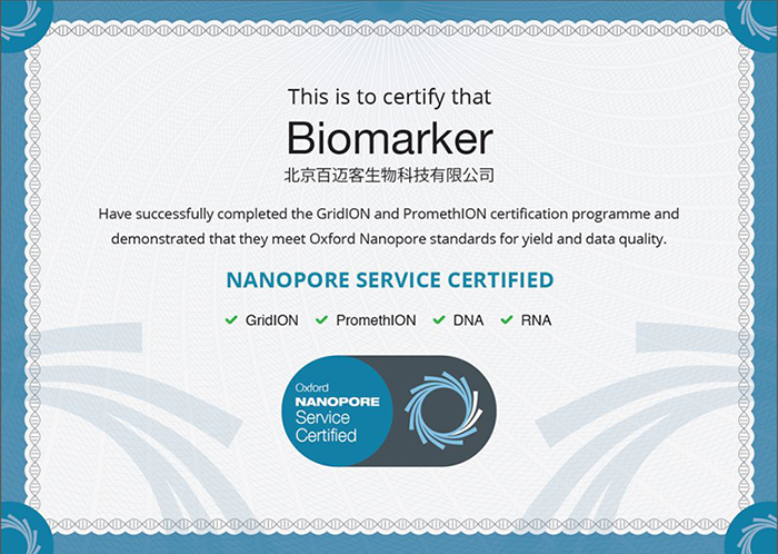 北京百邁客生物科技有限公司是中國(guó)大陸一家全部通過?PromthION/GridION平臺(tái)及DNA/RNA樣本官方認(rèn)證的公司。