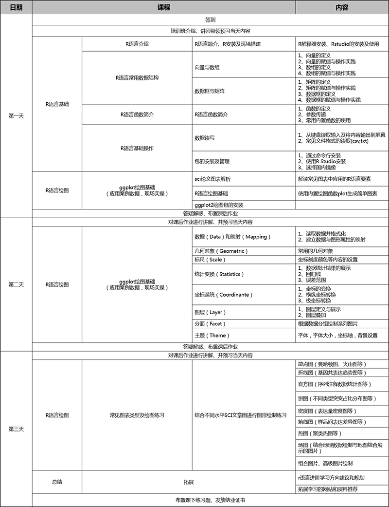 培訓(xùn)預(yù)期:通過3天培訓(xùn),可以學(xué)會R語言基礎(chǔ),可以繪制和修改sci常用圖形。