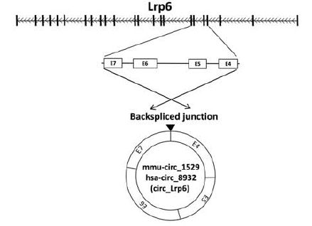 對于之前在VSMC具有重要生物學(xué)作用的miRNA,至少包含其中2個miRNA的保守結(jié)合位點:只有一個circRNA具有miR-145-5p結(jié)合位點,在小鼠和人之間是保守的。(小鼠中已被命名為circ_1529,人類中命名為circ_8932,其來源基因為Lrp6,其至少具有7個miR-145-5p結(jié)合位點)