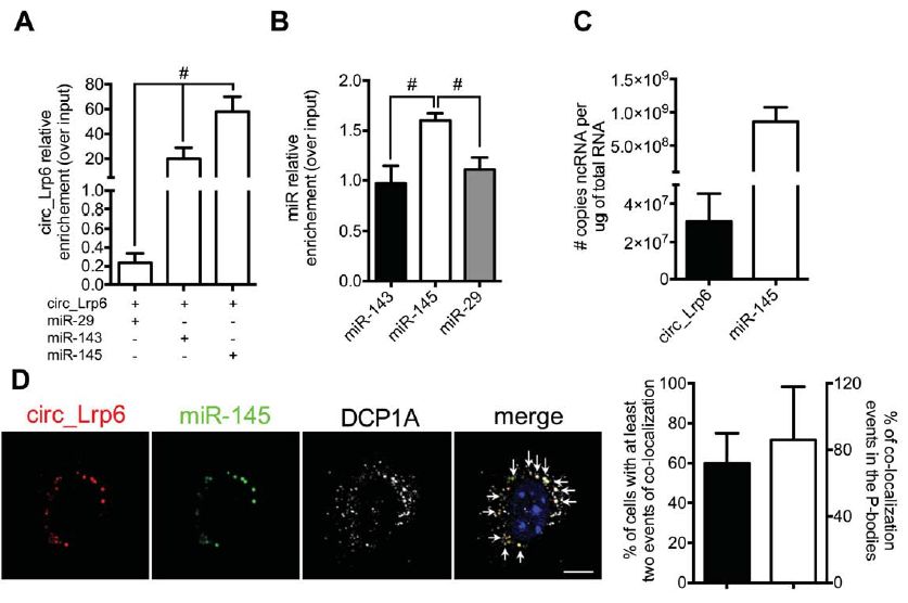 circ_Lrp6與miR-145直接結(jié)合:AGO2 IP實驗驗證二者與AGO2結(jié)合(circRNA與miRNA的結(jié)合由AGO2介導(dǎo));RIP實驗驗證二者之間直接結(jié)合;等。