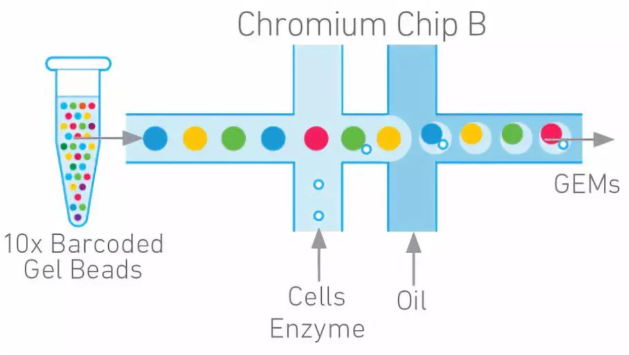 ChromiumTM Single Cell 3′ Solution是基于10 X Genomics平臺,能夠一次性分離、并標(biāo)記500–10000個單細(xì)胞,并能在單細(xì)胞水平進(jìn)行檢測的技術(shù),其通過微流控系統(tǒng),將單細(xì)胞或長片段DNA分子快速分配到油包水的微反應(yīng)體系中,每個微反應(yīng)體系中的單DNA分子會獲得唯一的特異性分子標(biāo)簽,制備生成的測序文庫可以在illumina平臺進(jìn)行測序,并由10x Genomics提供數(shù)據(jù)分析及可視化軟件,測序?qū)嶒灱胺治隽鞒炭梢院蚷llumina系統(tǒng)無縫銜接。該平臺廣泛應(yīng)用于3’單細(xì)胞轉(zhuǎn)錄組測序、基因組組裝應(yīng)用、免疫組庫測序、ATAC-seq、人全基因組及全外顯子組測序。