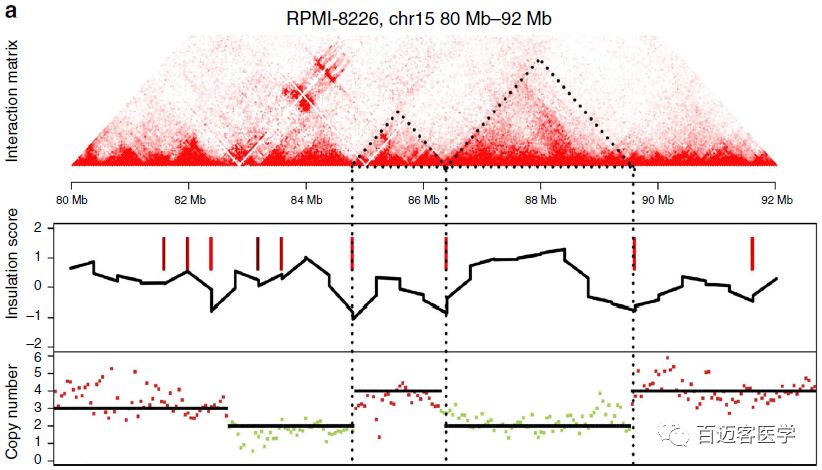 作者通過Hi-C對(duì)MM的三維基因組進(jìn)行了研究,并聯(lián)合WGS、RNA-seq、Chip-seq分析了三維結(jié)構(gòu)(compartment、TAD)、CNV、易位和基因表達(dá)之間的關(guān)系,從而識(shí)別MM相關(guān)的通路和關(guān)鍵基因。這些發(fā)現(xiàn)拓展了對(duì)MM的發(fā)生機(jī)制以及非整倍體癌癥基因組的空間無(wú)序性的認(rèn)識(shí),對(duì)MM的臨床治療和藥物開發(fā)有一定的啟示。