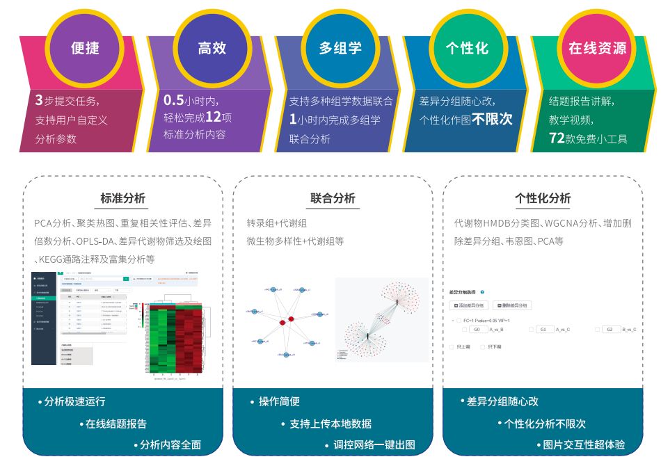 百邁客云提供專業(yè)的生信分析平臺(tái)(http://www.biocloud.net/),新上線的代謝組云APP兼具標(biāo)準(zhǔn)分析、聯(lián)合分析和個(gè)性化分析功能,同時(shí)海量在線資源以供學(xué)習(xí)和使用。
