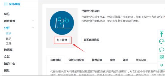 在農(nóng)學(xué)分析各平臺(tái)右側(cè)選擇代謝組分析平臺(tái),如下圖: