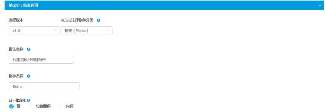 綜合選項(xiàng)選擇,包括注釋物種分類、分析報(bào)告名稱、物種名、歸一化方式等