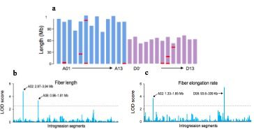 棉花是世界上最大的天然紡織纖維來(lái)源,每年纖維產(chǎn)量的90%以上來(lái)自異源四倍體棉花(G. hirsutum和G. barbadense),它起源于大約1-2百萬(wàn)年前的異源多樣化事件,隨后是數(shù)千年的不對(duì)稱亞基因組選擇。陸地棉(G. hirsutum)由于其高產(chǎn)而在全世界種植。G. barbadense以其卓越的纖維質(zhì)量而受贊譽(yù)。為了培育產(chǎn)生纖維更長(zhǎng),更細(xì)和更強(qiáng)韌的陸地棉(G. hirsutum)品種,一種合理有效的方法是將海島棉(G. barbadense)的優(yōu)良纖維性狀引入陸地棉?;蚪M學(xué)啟動(dòng)的育種策略需要對(duì)基因組組織進(jìn)行詳細(xì)而有力的理解。