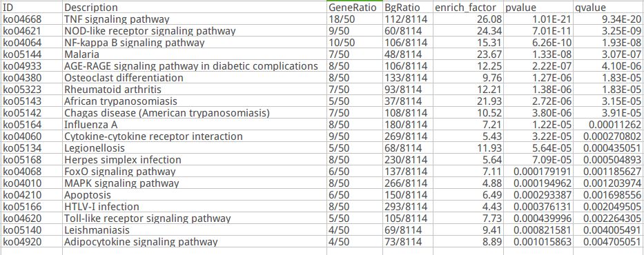#對富集結(jié)果按照qvalue進行從小到大排序,保證最顯著的通路在前