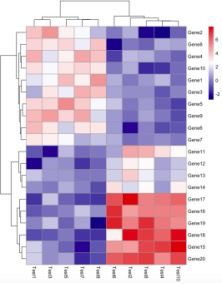 pheatmap是R語言中一個使用非常廣泛的用于繪制聚類熱圖的繪圖包。使用這個繪圖包可以幫助我們快速的生成包含聚類結(jié)果的熱圖。