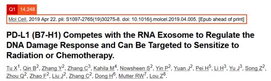 PD-L1(B7-H1)與RNA外切體競爭調節(jié)DNA損傷反應,可作為對放療或化療敏感的靶標