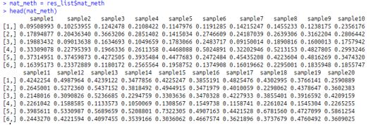 #矩陣,其中行對應差異甲基化區(qū)域(DMR),矩陣中的值是每個樣品中DMR中的平均甲基化水平。