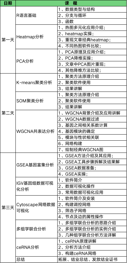 隨著測(cè)序技術(shù)的發(fā)展及測(cè)序成本的降低,轉(zhuǎn)錄組分析逐漸發(fā)展成為一項(xiàng)基礎(chǔ)的分析方法。越來(lái)越多的科研項(xiàng)目中使用轉(zhuǎn)錄組數(shù)據(jù)分析來(lái)做為分析的支持手段之一。為了協(xié)助科研工作者對(duì)轉(zhuǎn)錄組測(cè)序數(shù)據(jù)進(jìn)行深度挖掘,本次培訓(xùn)將從常用的個(gè)性化分析軟件操作入手,帶領(lǐng)大家學(xué)習(xí)轉(zhuǎn)錄組分析中常用的分析方案及實(shí)現(xiàn)方法,從而滿足文章后期發(fā)表的需求,同時(shí)也為我們生物信息科學(xué)工作者們提供一個(gè)互相交流的平臺(tái)。