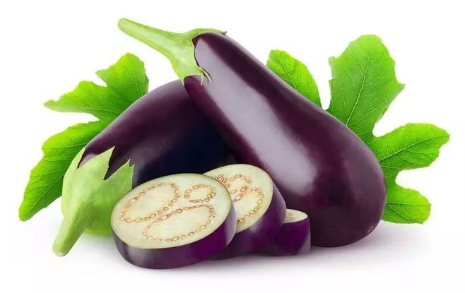圖1. Fruit and leaf morphology of the two eggplant parental lines and the F2 population. (a) Leaves of Solanum linnaeanum “1809” (right) and S. melongena “1836” (left); (b) mature fruits of “1809” (right) and “1836” (left); (c) mature fruits of the representative F2 individuals; (d) leaves of the representative F2 individuals.