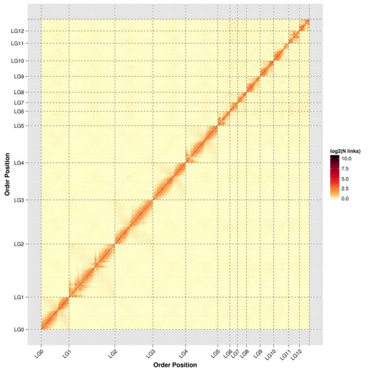 2019年9月30日,福建農(nóng)林大學(xué)基因組研究中心明瑞光教授團(tuán)隊聯(lián)合多個單位共同合作的紅苞鳳梨研究成果在國際知名期刊Nature Genetics在線發(fā)表。該研究獲得了513 Mb基因組序列,并通過百邁客Hi-C實驗技術(shù)助力,最終將456 Mb基因組定位到25條染色體上(掛載率約88.8%),完成了菠蘿基因組學(xué)領(lǐng)域的再一次突破[2]。