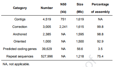 Hi-C測序深度及掛載率:112 ×;88.07%