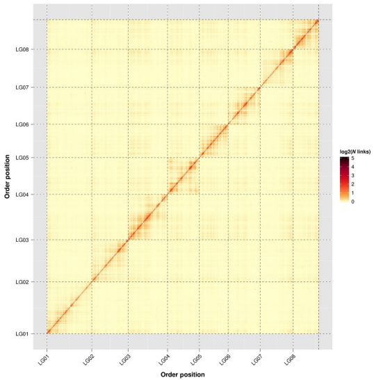 Hi-C測序深度及掛載率:77.93×;96.41%