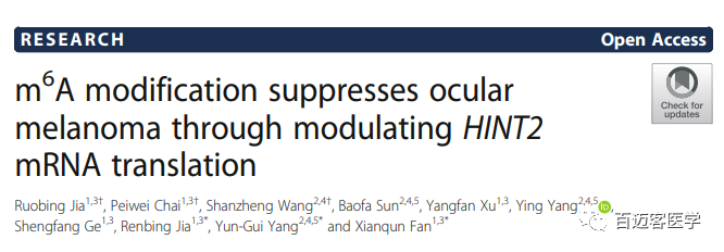 文獻(xiàn)名:m6A modification suppresses ocular melanoma through modulating HINT2?mRNA translation