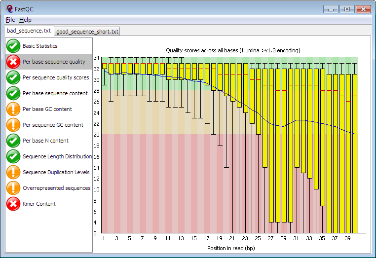 測序數(shù)據(jù)的質(zhì)量直接決定了數(shù)據(jù)分析的質(zhì)量及可靠性。低質(zhì)量的測序數(shù)據(jù)往往導致分析結果出現(xiàn)異?;蛘叻治鼋Y果中包含過多的假陽性假陰性結果。利用FastQC可以快速實現(xiàn)對大量測序數(shù)據(jù)的質(zhì)量評估并生成分析結果報告。分析的指標完善,同時可以生成可視化的圖形報告,數(shù)據(jù)質(zhì)量結果一目了然。