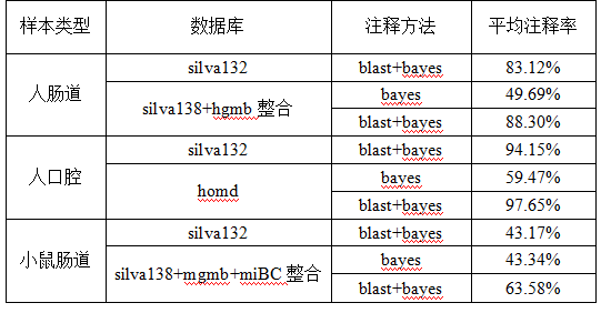 表2.全長擴增子物種水平注釋率統(tǒng)計