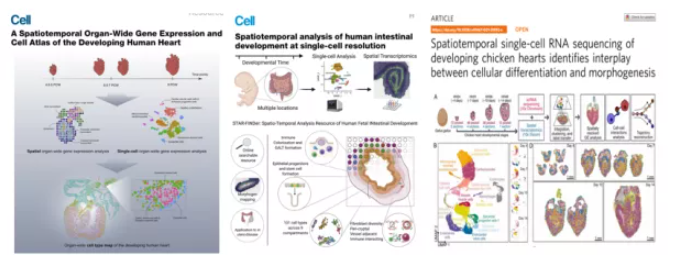 細(xì)胞在空間位置的異質(zhì)性,對(duì)于干細(xì)胞分化、組織發(fā)育和再生起著重要作用,空間轉(zhuǎn)錄組技術(shù)已經(jīng)在人的胚胎心臟、胚胎腸道和雞的胚胎心臟發(fā)育中得到應(yīng)用,探明了胚胎發(fā)育的動(dòng)態(tài)過程,空間組學(xué)發(fā)展可以清晰的描繪胚胎發(fā)育的藍(lán)圖。