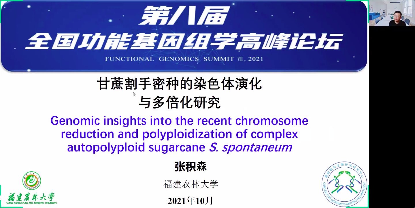 福建農(nóng)林大學(xué)張積森教授介紹了甘蔗的經(jīng)濟(jì)價(jià)值及甘蔗屬的分類,并對割手密品種(Np-X)的基因組組裝進(jìn)行了詳細(xì)解說,對甘蔗割手密種在禾本科的演化歷史進(jìn)行了進(jìn)一步講解,提出了不同染色體基數(shù)割手密群體的演化假說。同時(shí)還指出此研究重點(diǎn)解析了相關(guān)性狀的重要候選基因,最后展示了已經(jīng)開發(fā)的甘蔗數(shù)據(jù)庫以及推進(jìn)甘蔗全基因組選擇育種的幾點(diǎn)思考。
