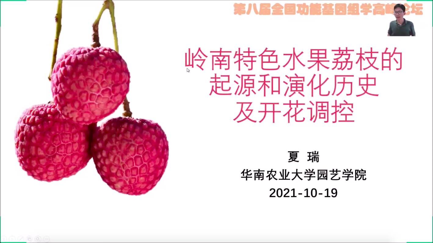 華南農(nóng)業(yè)大學(xué)夏瑞教授對嶺南特色水果荔枝的起源、演化歷史及開花調(diào)控進(jìn)行了闡述,展示了無患子科荔枝“妃子笑”單倍型基因組的構(gòu)建與荔枝的演化分析,并介紹了72份荔枝種質(zhì)資源的重測序研究,表明栽培荔枝可能起源于兩條獨(dú)立的馴化事件;另外,還闡述了荔枝開花相關(guān)基因的研究,表示這些關(guān)于荔枝基因組和馴化歷史的結(jié)果必將加速荔枝及其它相關(guān)無患子科植物的基礎(chǔ)研究和遺傳改良。