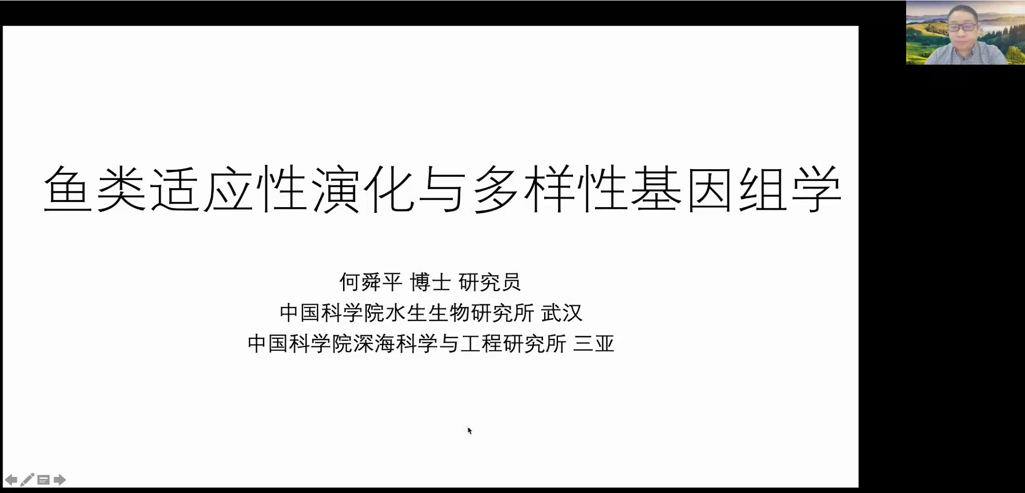 中國科學(xué)院水生生物研究所何舜平研究員充分的介紹了魚類適應(yīng)性演化相關(guān)研究。研究團隊基于輻鰭魚類與四足類進化年齡、選擇壓力、表達模式以及相關(guān)的基因功能的比較分析,探討了它們對脊椎動物“登陸”事件以及矛尾魚進化的意義。揭示了早在脊椎動物祖先首次登陸之前,許多對脊椎動物登陸至關(guān)重要的肺、心臟和運動功能的遺傳調(diào)控網(wǎng)絡(luò)就已存在。進一步通過演變中重要地位的肺魚基因組解析了其肺表面活性劑關(guān)鍵基因、手指形成關(guān)鍵元件保守元件、抗抑郁相關(guān)關(guān)鍵基因。最后何老師基于萬種魚基因計劃也為我們展示了鯉科魚類適應(yīng)進化的科研成果。