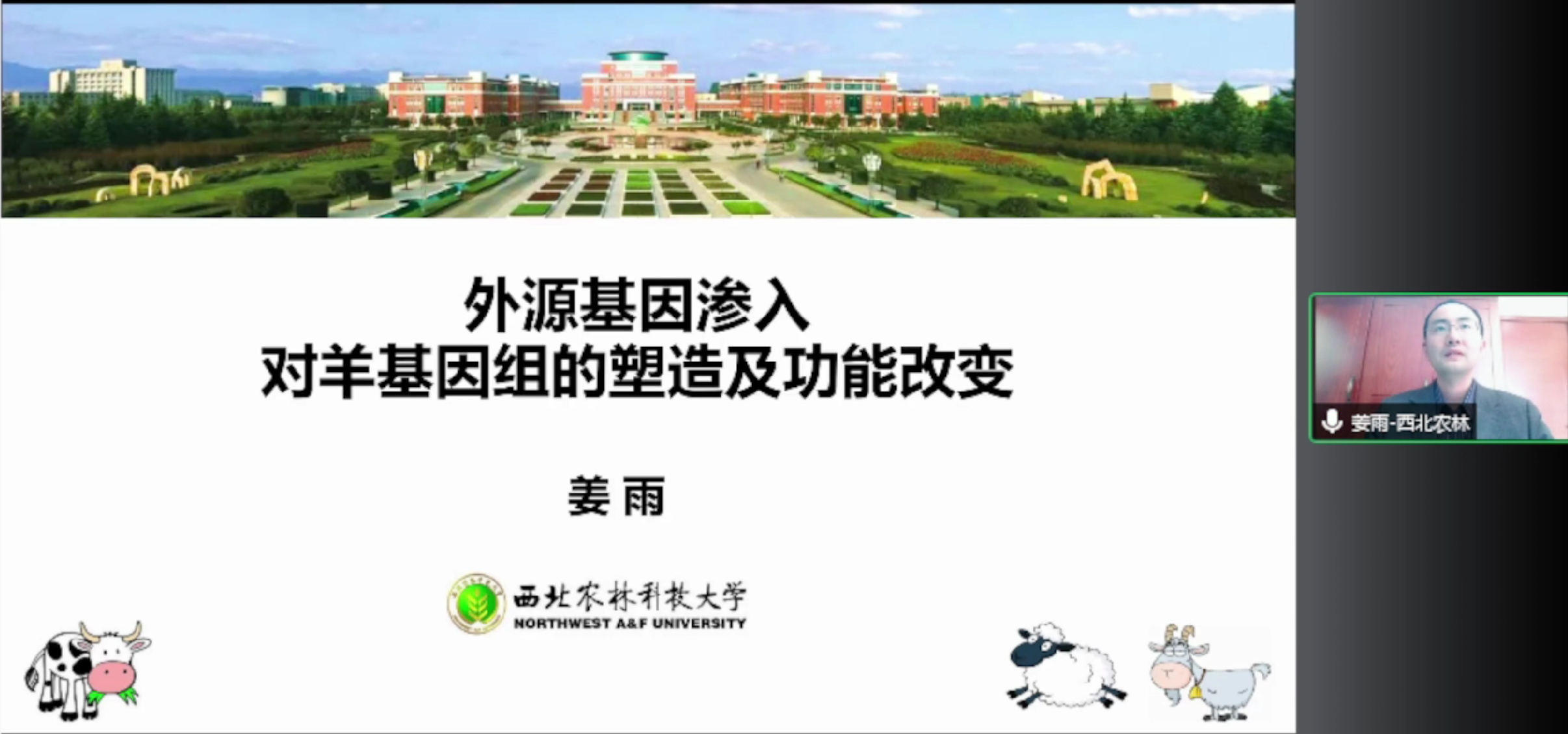 西北農(nóng)林科技大學(xué)姜雨教授報告詳述了基因滲入對羊基因組的塑造及其功能改變,其研究團隊通過代表了170多個世界綿羊品種和七個綿羊?qū)僖吧锓N的全基因組序列分析,發(fā)現(xiàn)平均每只家養(yǎng)綿羊的基因組序列分別來自于伊朗的野生摩佛倫羊、東方盤羊和東亞盤羊的雜交滲入。說明起源于野生物種并滲入家養(yǎng)綿羊的獨特單倍型在表型多樣性和綿羊本地化適應(yīng)中起著重要作用。并發(fā)現(xiàn)綿羊的大角、小角、無角以及耳朵大小性狀相關(guān)基因。最后表示,從多個近緣野生物種、馴化祖先種的不同群體之間發(fā)生的滲入事件持續(xù)發(fā)生,遠比想象的復(fù)雜,需要結(jié)合歷史和地理的遷徙知識討論。滲入單倍型在多種功能上發(fā)揮作用,其與已存在變異、新發(fā)突變通過快速組合,適應(yīng)新的環(huán)境。